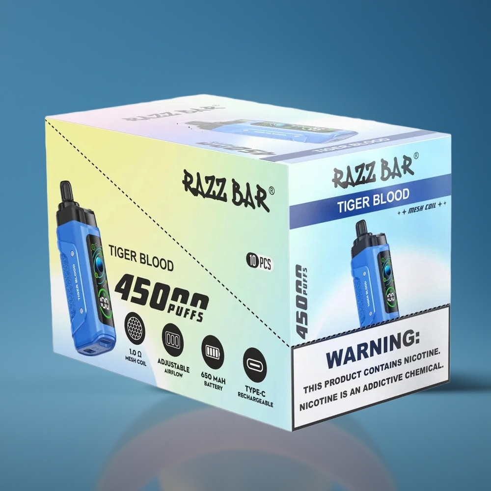 A Razz Bar 45000 Puffs tökéletes választás minden olyan vaper számára, aki hosszú távú teljesítményt és prémium minőséget keres. Rendelje most nagykereskedelmi mennyiségben a Hungary Wholesale lehetőségeken keresztül, és élvezze a kivételes vaping élményt!